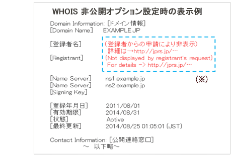 ※ http://~はWhois登録者情報非表示機能に関する説明コンテンツへのリンクとなります。