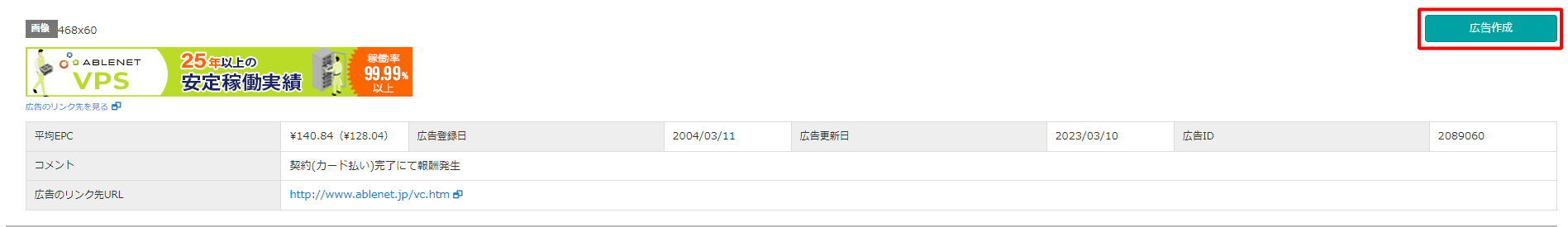 - 検索結果から「ABLENET VPS」の【広告素材を選ぶ】ボタンを押してください。