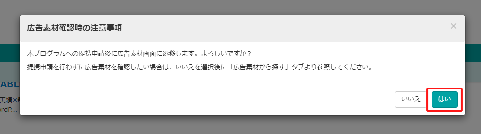 - 以下のような画面が出るので、【はい】を押してください。(自動で提携されます。)