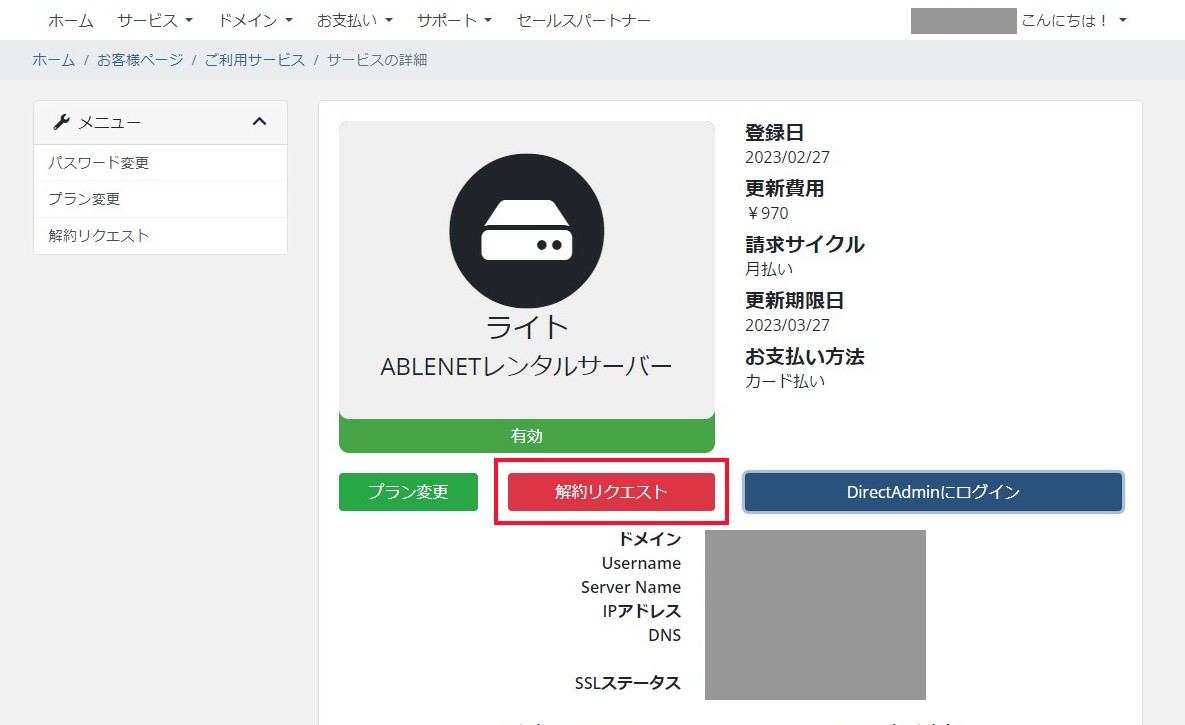 旧共用サーバーの解約はこちら(2023年3月1日以前にお申し込みいただいたお客様)