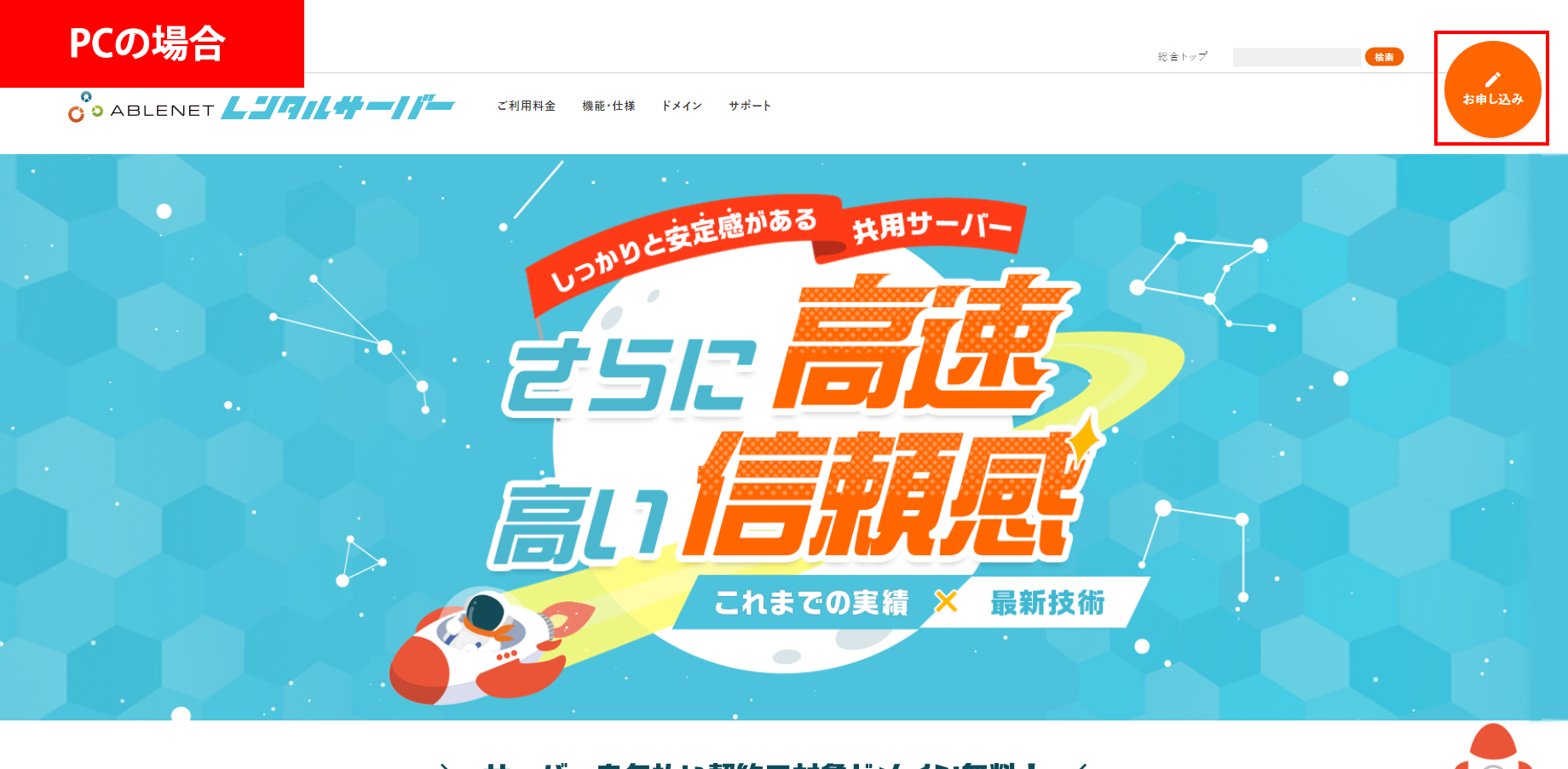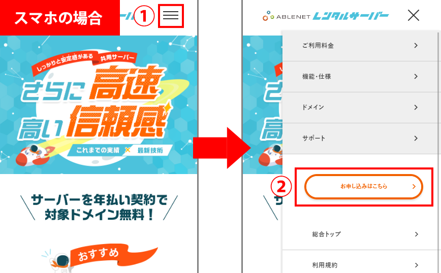 - 右上のお申し込みボタンを押してください。(スマホは右上のメニュー⇒お申し込み)