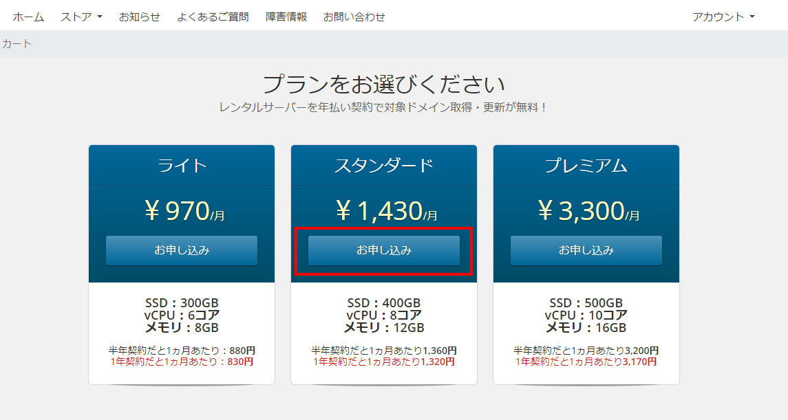 - ご希望のプランのお申し込みを押してください。