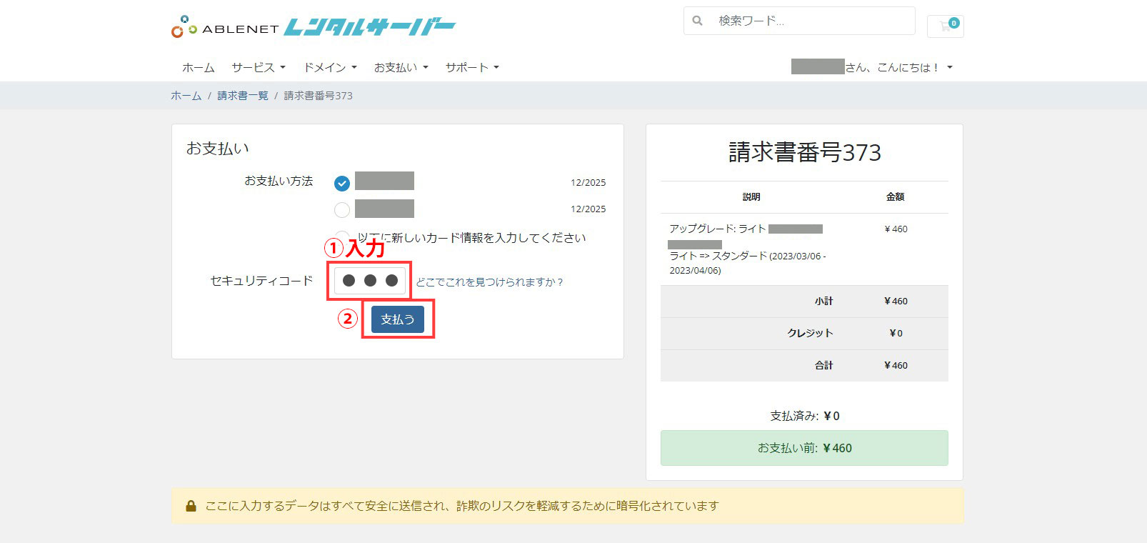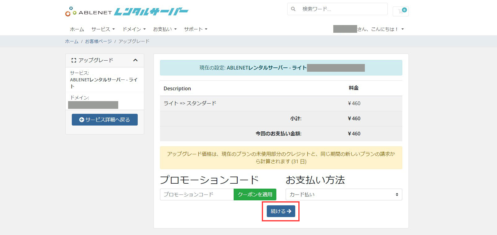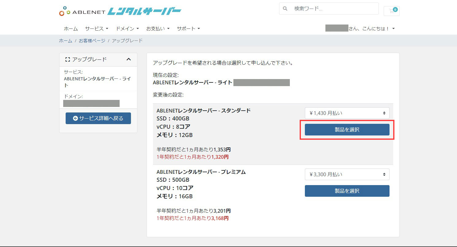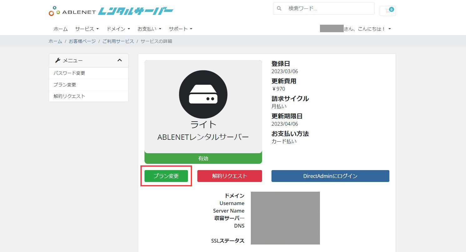 お客様ページにログイン後、ご利用中のサービスの【詳細を見る】を押してください。