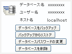 データベースが作成されると、コントロールパネルには以下のようにデータベースを利用する為に必要な情報とデータベースを操作するためのボタンが表示されます。