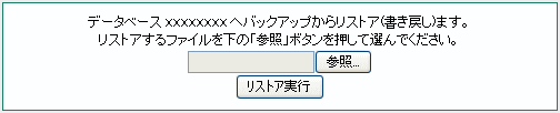 バックアップしておいたデータベースをサーバーにリストア(復元)するには、「バックアップからリストア」ボタンをクリック。