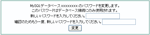 新しいパスワードの入力欄に確認のため2回入力して「変更」ボタンをクリックするとその場でデータベースのパスワードが変更されます。