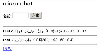 このCGIは非常に簡単なチャットの機能のCGIです。以下のようなシンプルなチャットです。