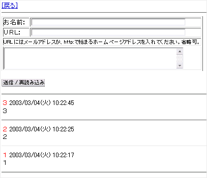 このCGIは下記のようなシンプルな掲示板です。