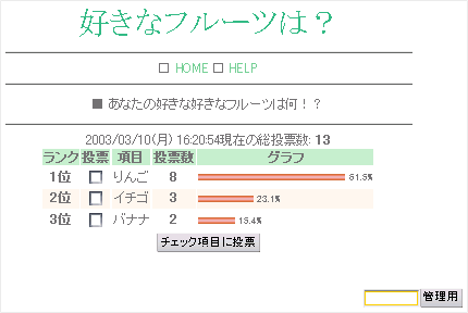このCGIは簡単な投票を行うCGIです。アンケートなどにご利用ください。