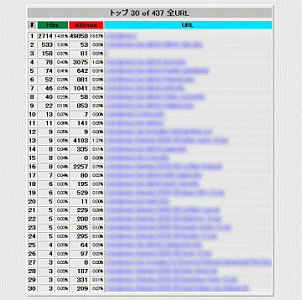 | アクセス数の多かったURLのベスト30が確認できます。 |