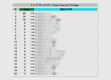 | トップ 20 of (検索文字列の数) Total Search Strings / 訪問者の検索文字列のベスト20 |