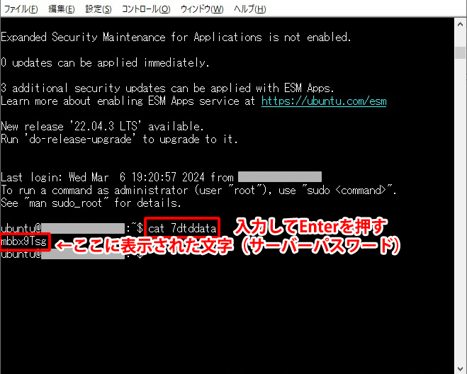 ログイン後、【cat 7dtddata】を入力し、【Enter】を押してください。