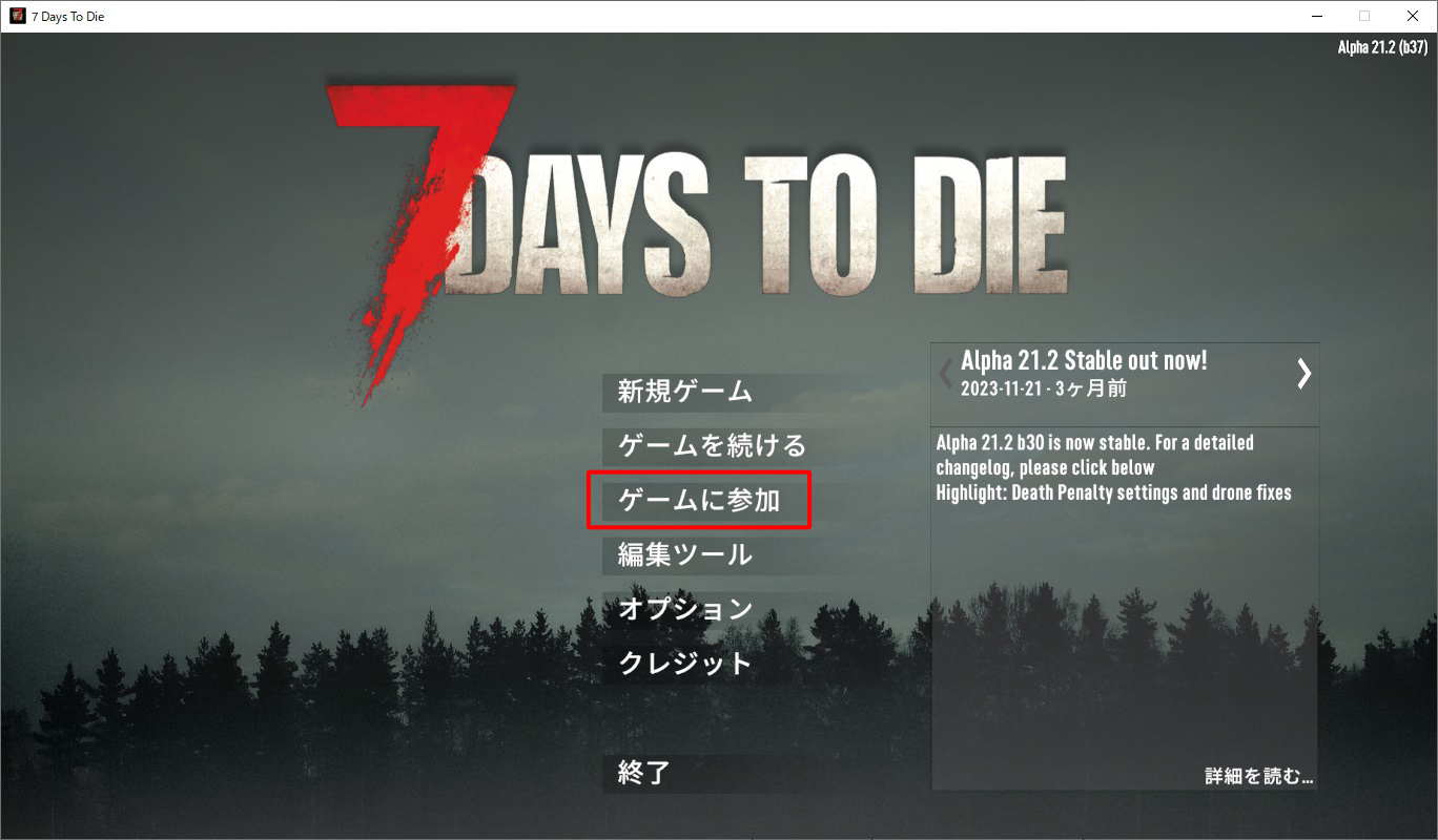 - 7 Days to Dieを起動後、【ゲームに参加】を押ししてください。