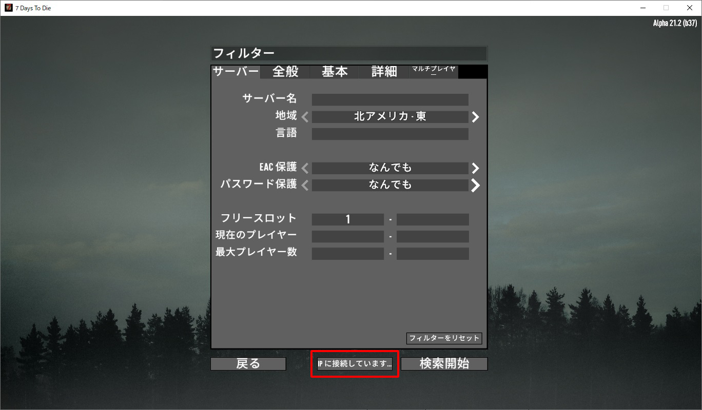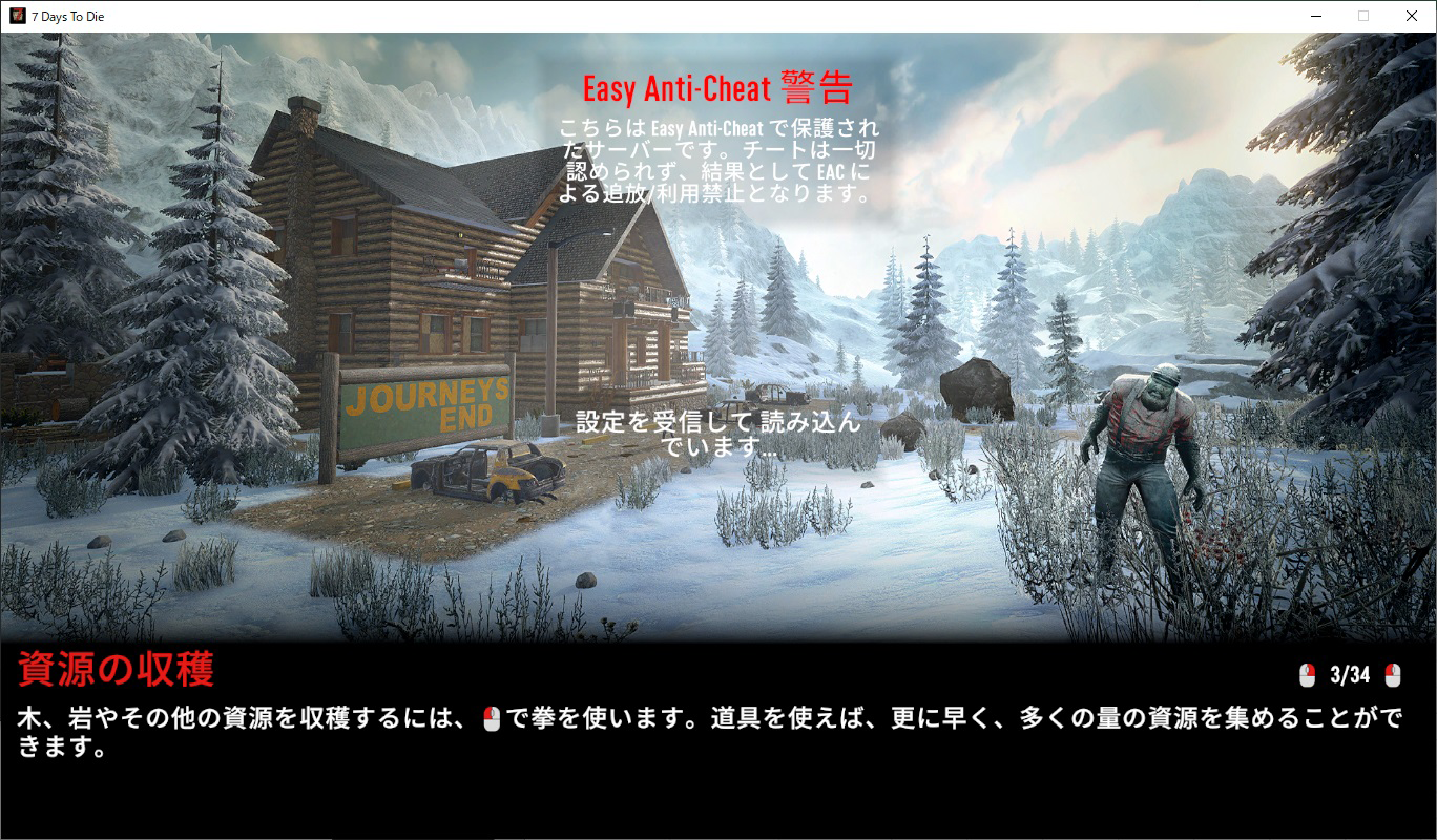 ※ログイン画面が表示さても7days to dieサーバーの起動が完了するまでに約5分~10分かかります。
