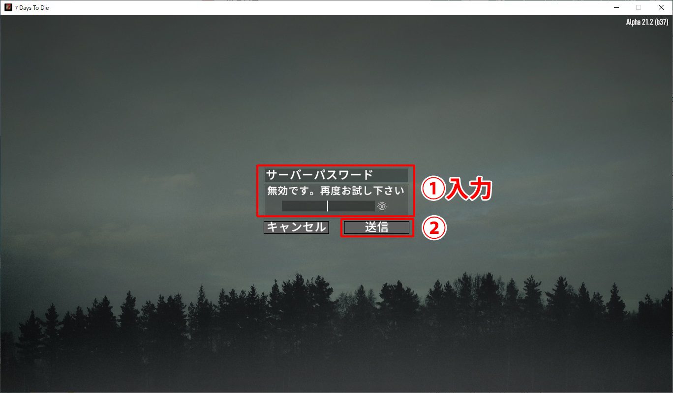 - ①【サーバーパスワード】を入力し②【送信】を押ししてください。