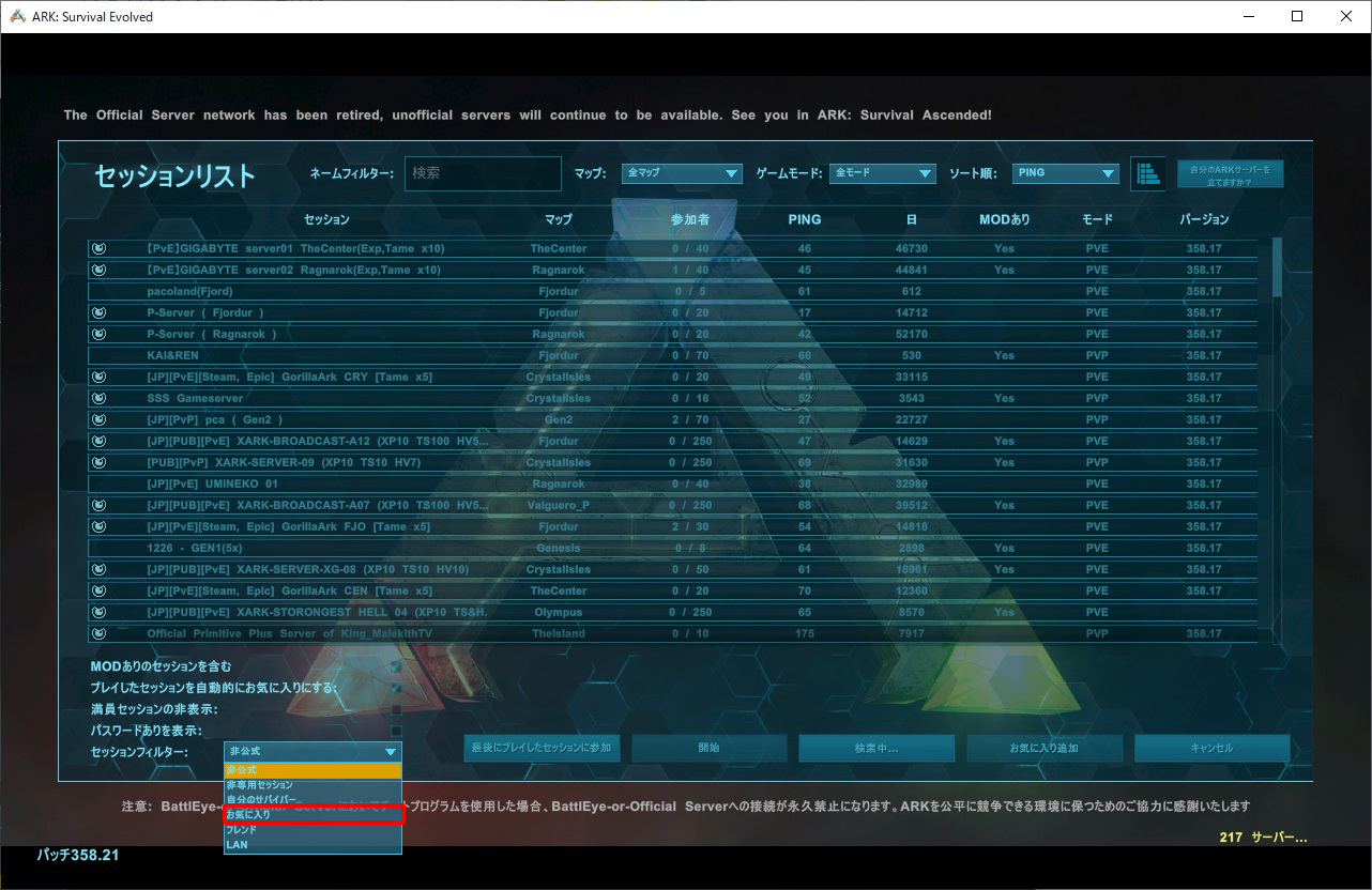 - ARK Survival Evolvedを起動後、【サーバー検索】を押ししてください。